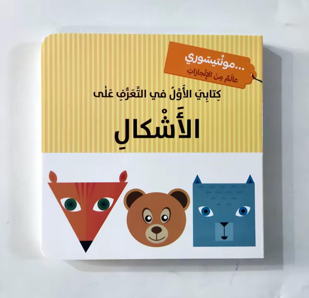 Arabic board book for toddlers designed to build early vocabulary, language skills, and confidence through simple words, visuals, and interactive reading.